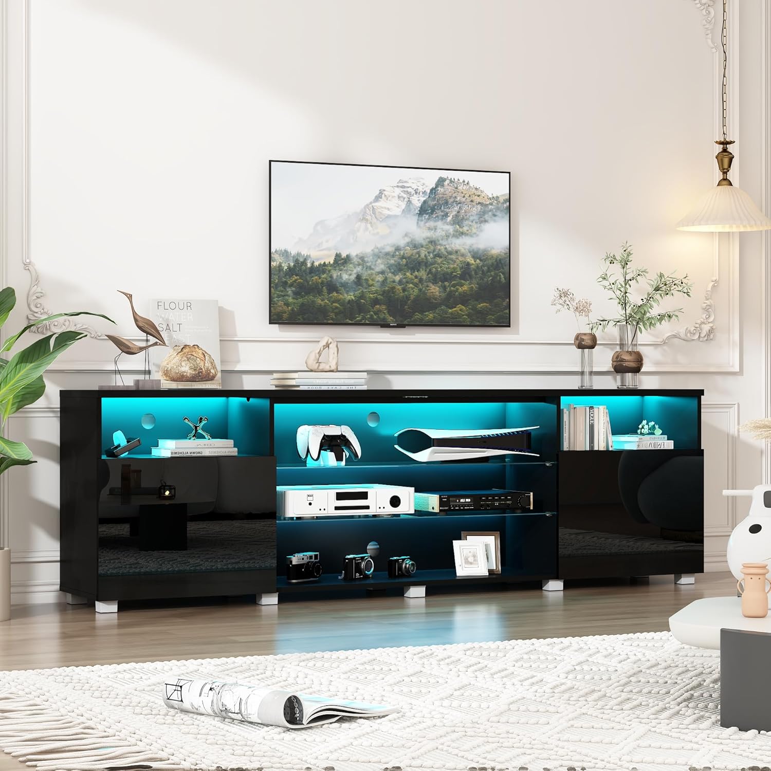 4. High Glossy and Modern Style: The cabinet doors with high glossy surface, is the perfect combination of modern and elegant. This LED entertainment center black adds special charm to your room, showing high quality minimalist home life.