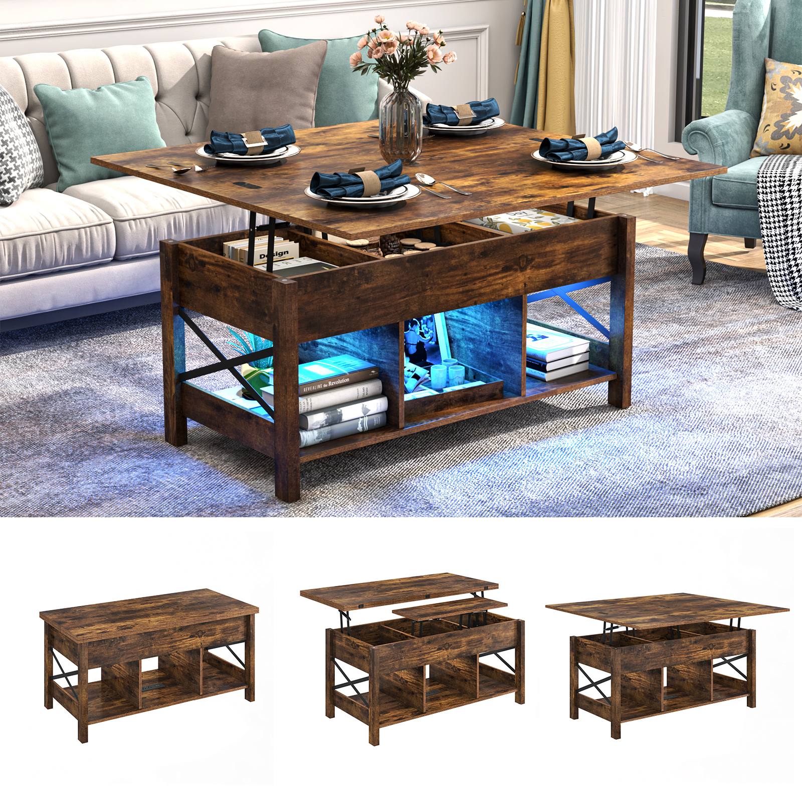- Maximize your storage with our flip-top coffee table. Featuring a lift-top surface that reveals 3 hidden storage areas and 3 open shelf. Plus, enjoy even more space to showcase your favorite decor with an additional open shelf.
