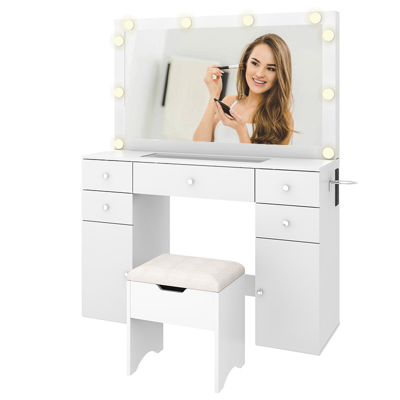🌸🌸3 Color Light Vanity Mirror -- ChVans vanity have a large lighted mirror, and have built 3 color LED light bulbs, adjust the light brightness and color temperature (cool white, natural white, and warm white) to bring flawless dreeser application. Quickly upgrade your vanity desk with a wide and sophisticated makeup mirror that adds a touch of glamour to your bedroom.( Makeup mirror size is 39'' L x 21'' W)